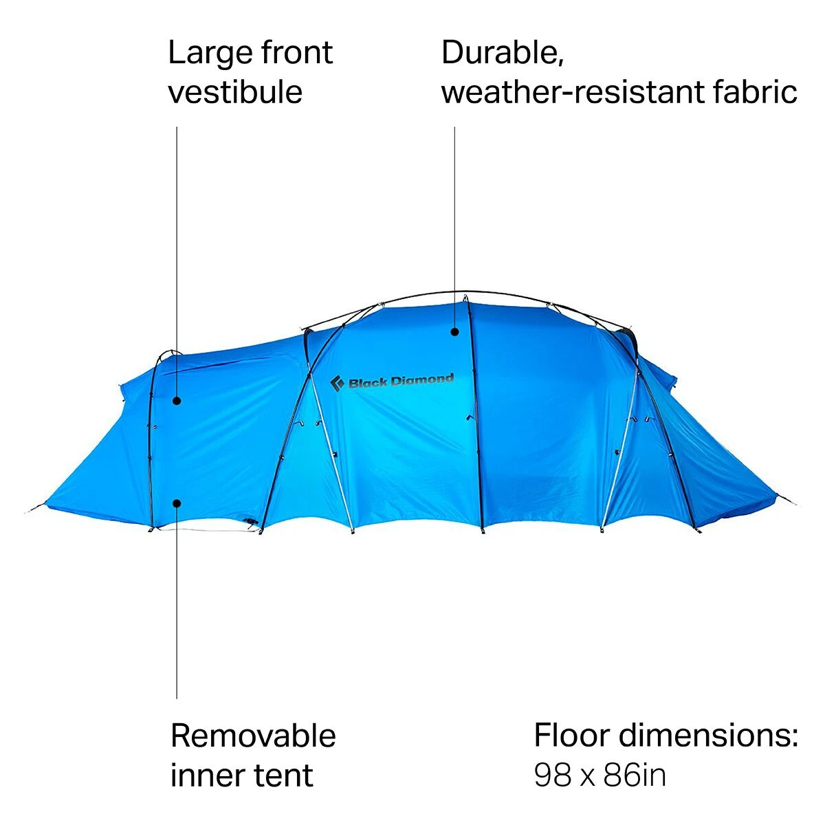 - Removable inner tent to use the shell as a basecamp shelter